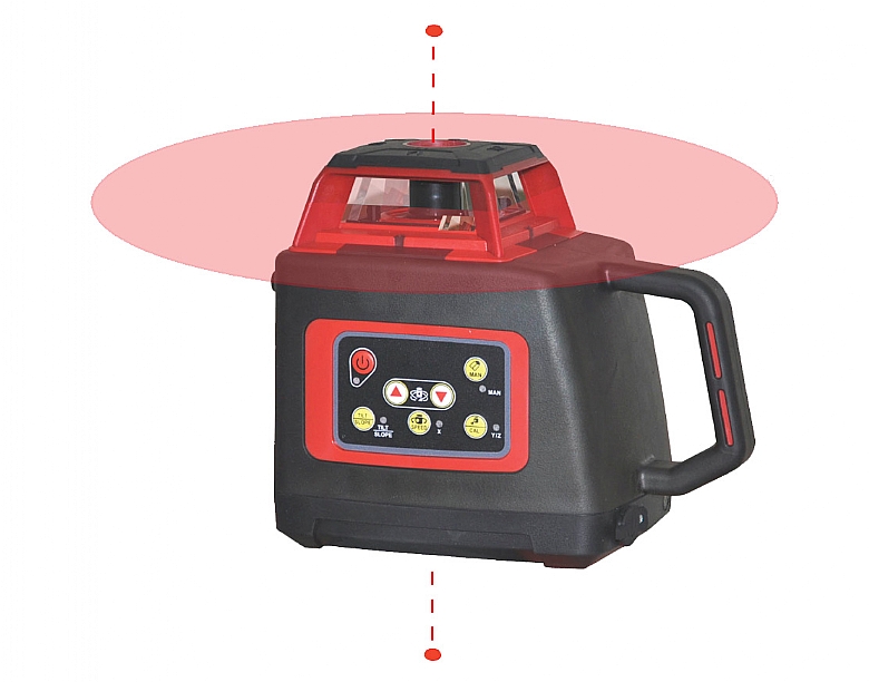 קרן לייזר עליונה, אופקית ואנכית מסתובבת עם קומפנסטור אלקטרוני ושלט.